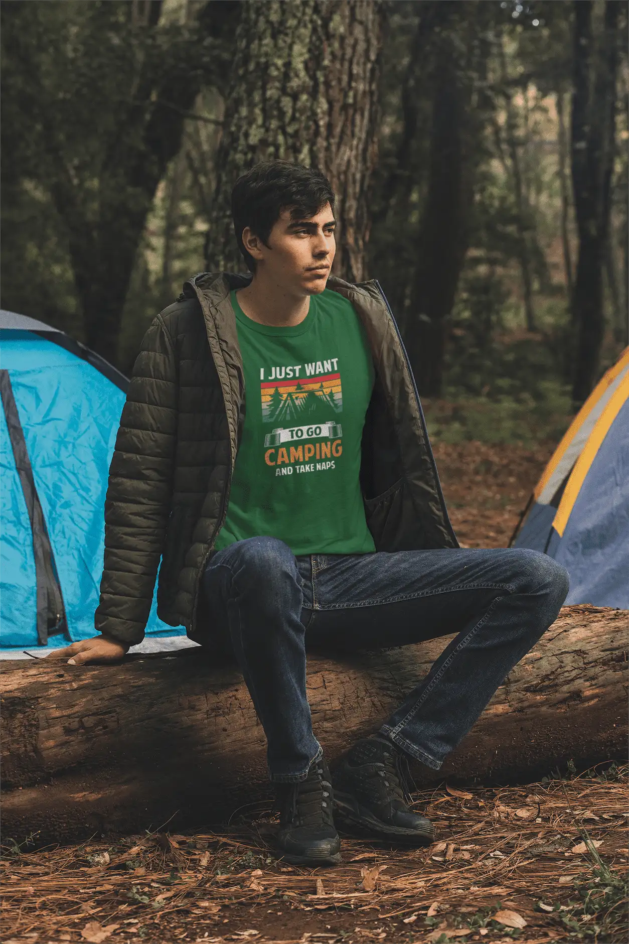 For the soul that craves starry skies and serene naps, this relaxed-fit tee captures the perfect weekend escape. Featuring retro camping graphics with bold text, this shirt is a cozy shoutout to those who find peace in nature and power in a good nap.