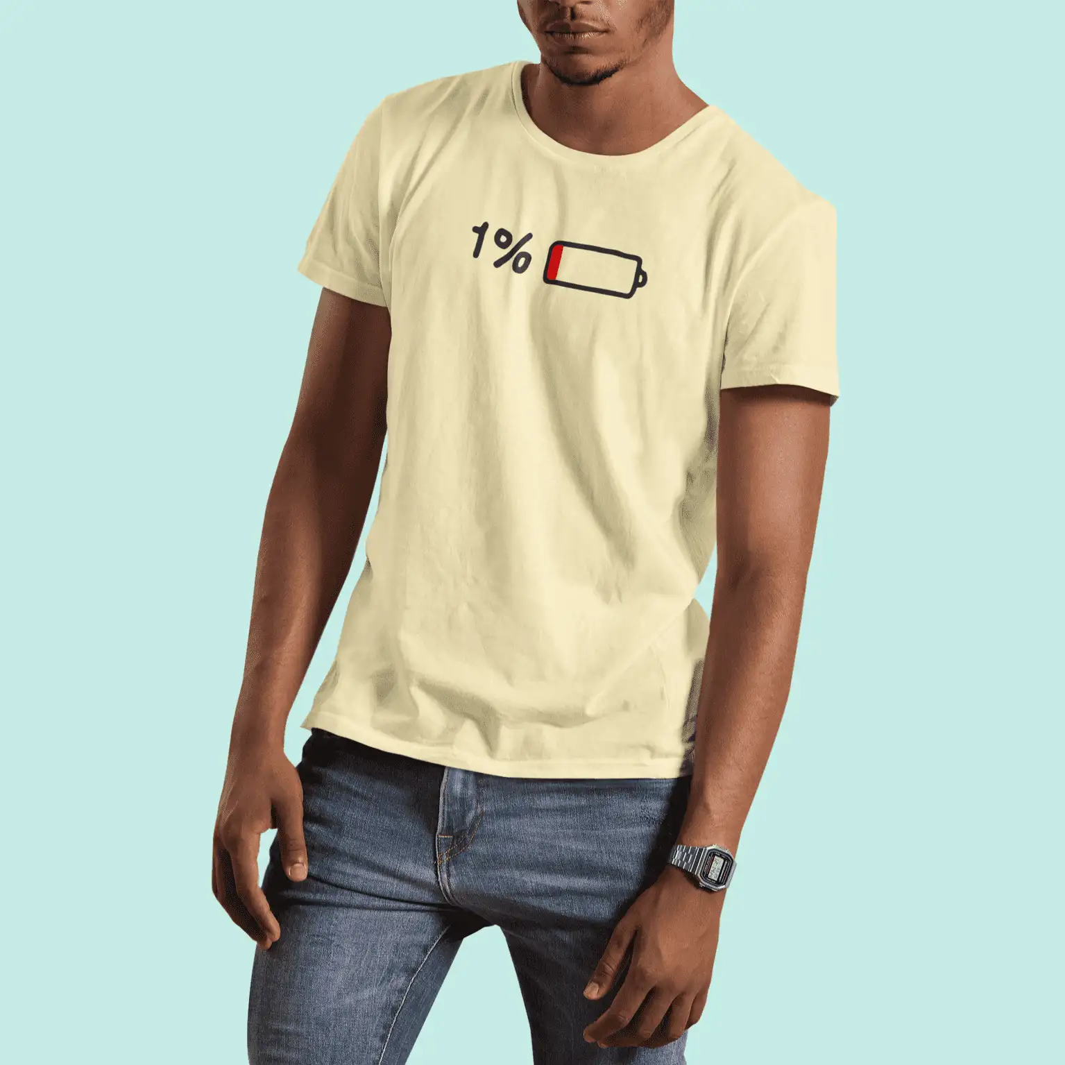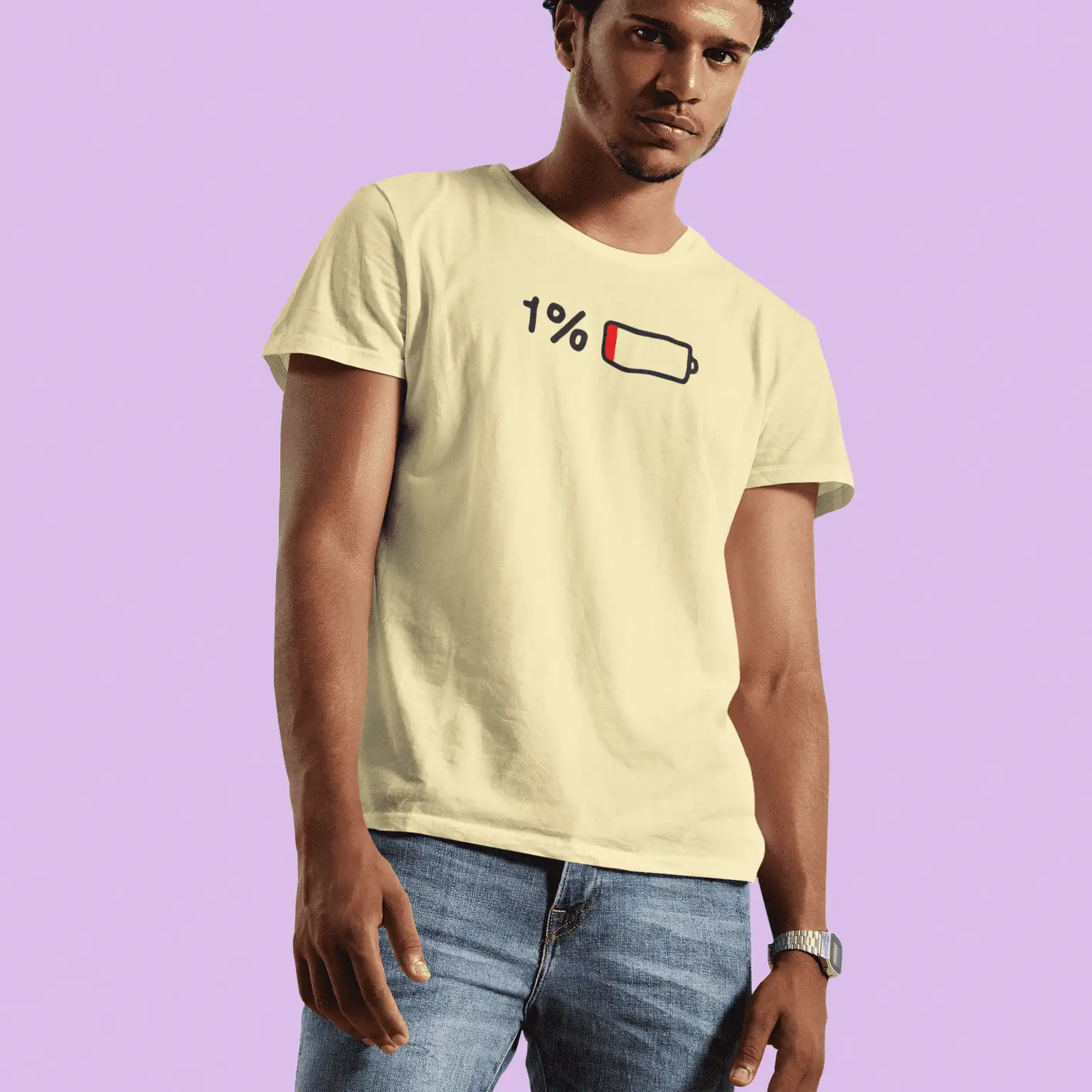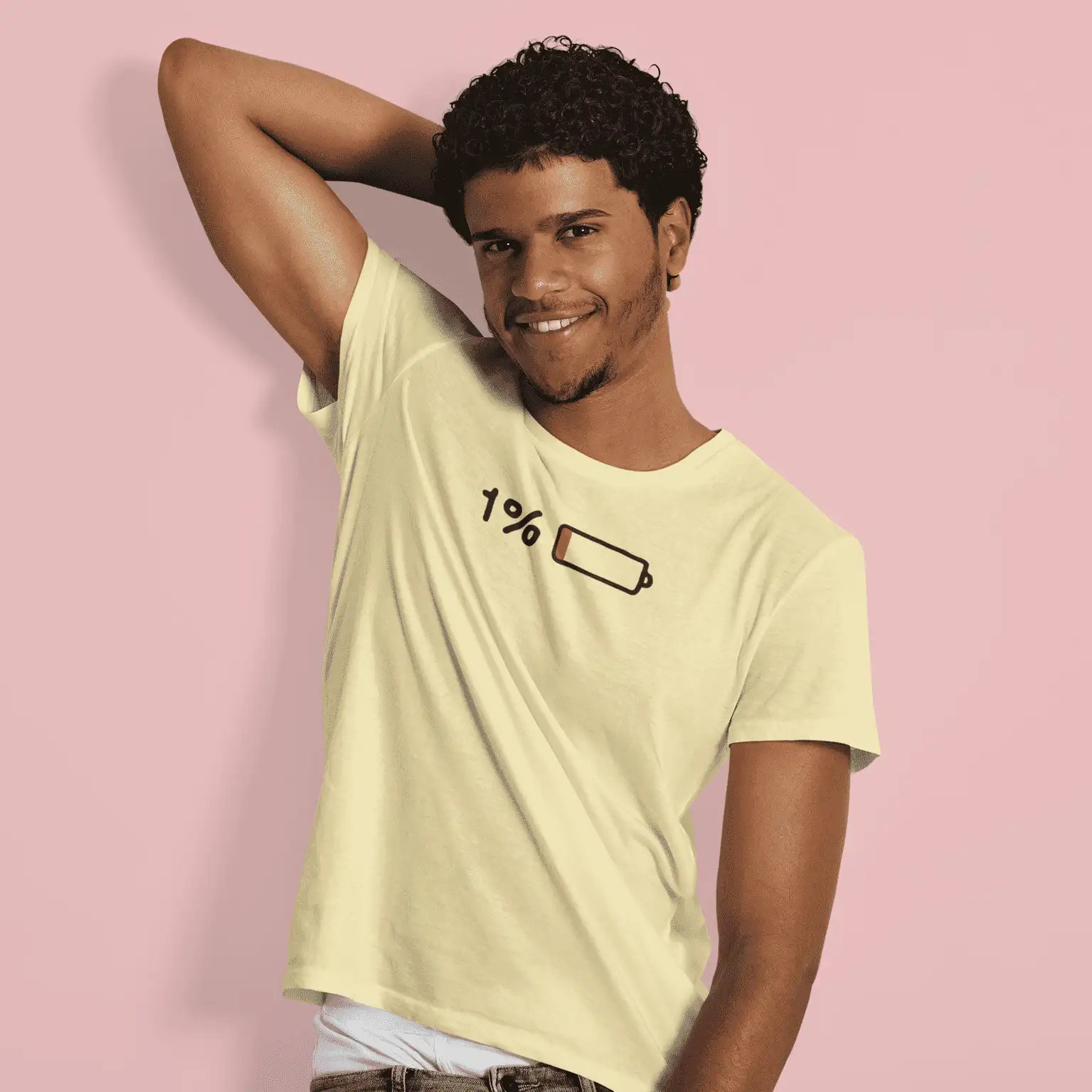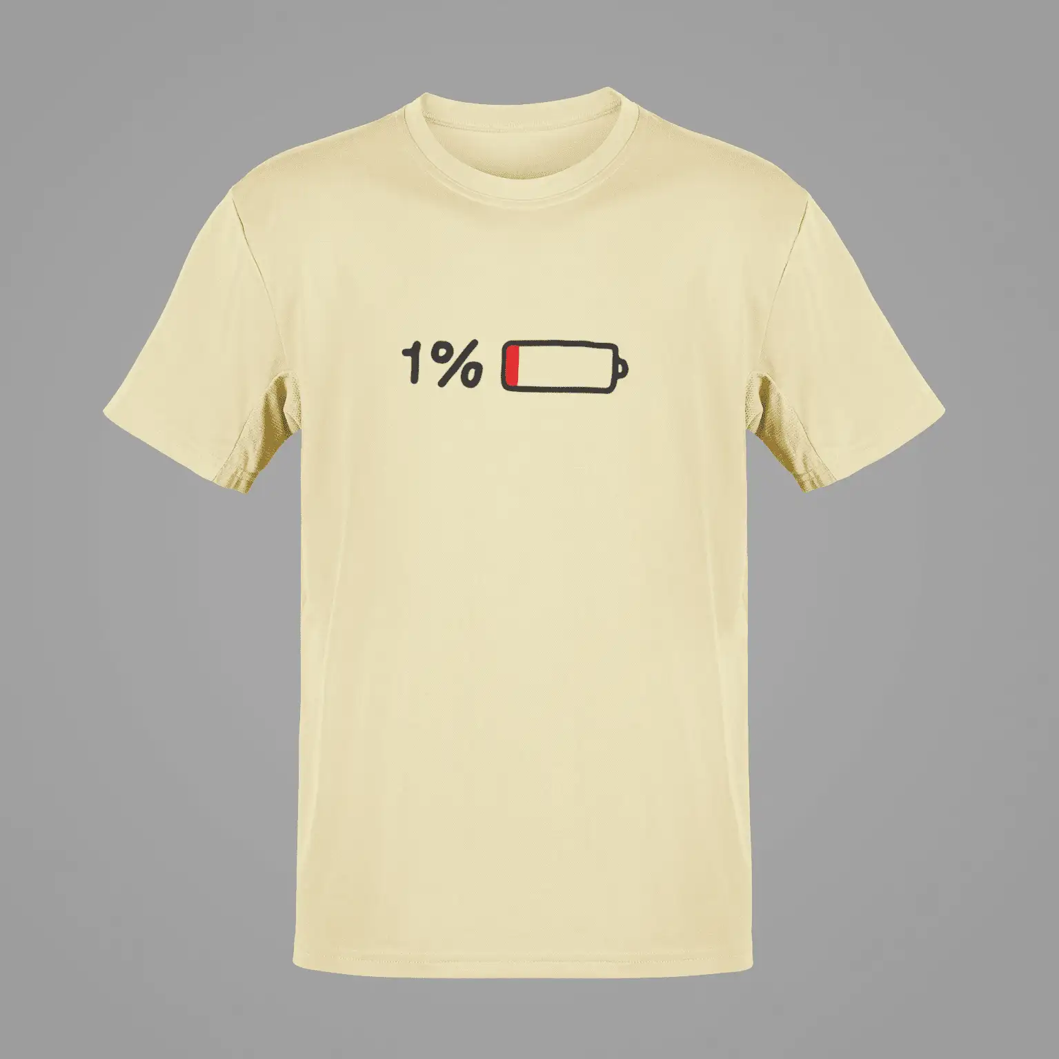 Running low on energy but never on style? This vibrant yellow tee says it all with a cheeky 1% battery icon that speaks volumes for your mood or Monday mornings. Whether you’re drained from life, work, or workouts – this tee is your perfect wear-anywhere statement piece.